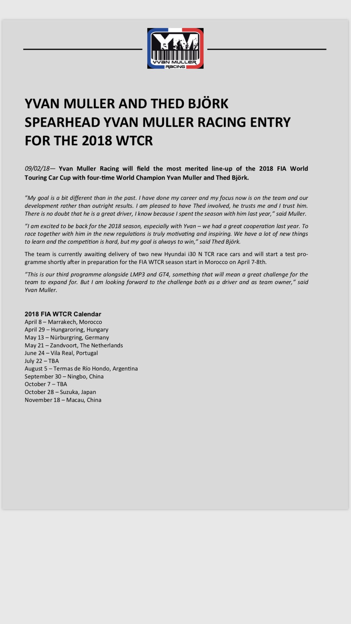 Enige wat er in dat bericht staat is dat Björk en Muller samen gaan in het Wtcr.